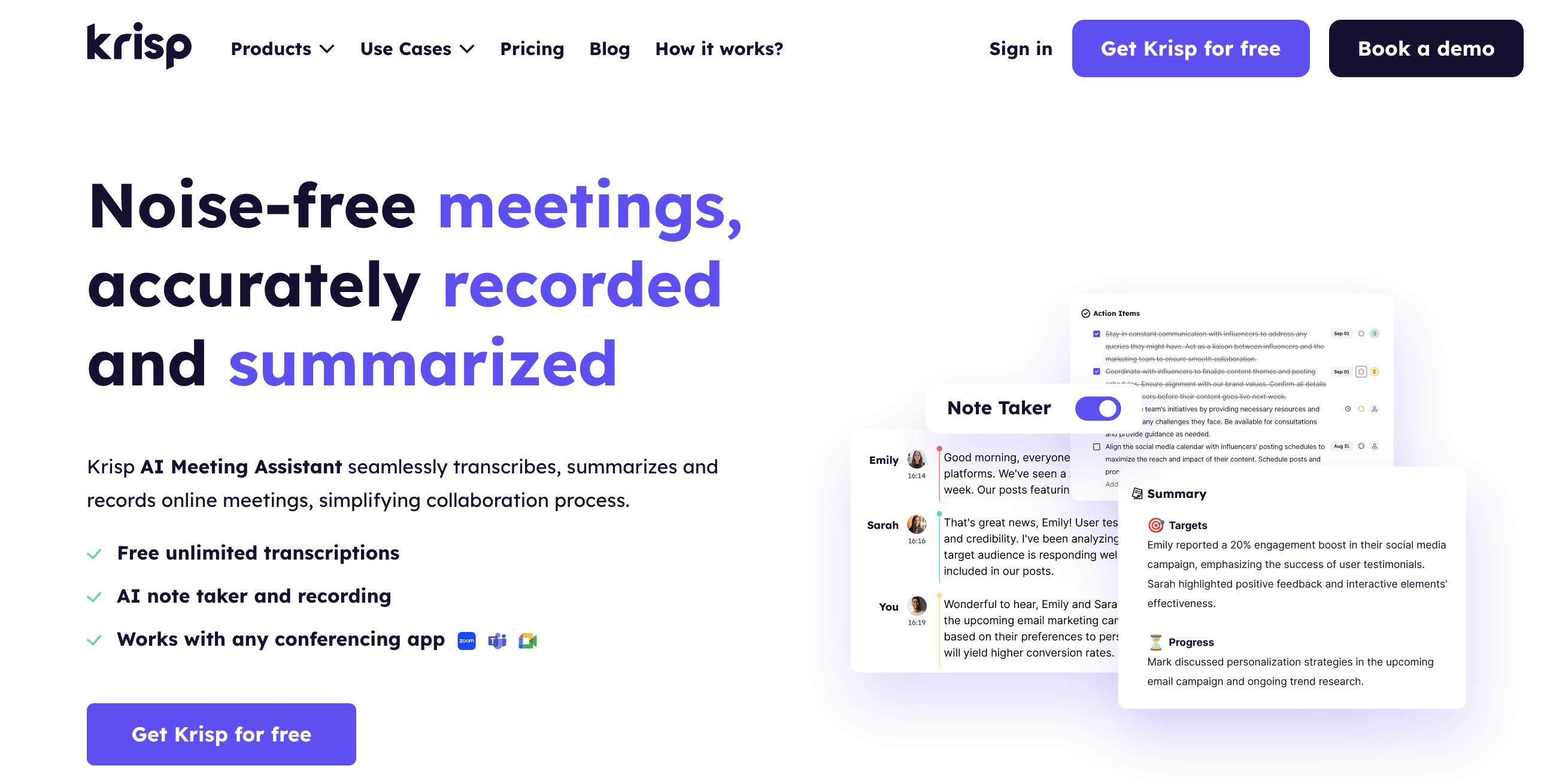 Krisp AI Meeting Assistant is the all-in-one tool that makes these features instantly available. This builds trust, as everyone feels included and up-to-date. With all the information in one place, team members are ready to join discussions and make informed decisions, leading to better collaboration overall.
