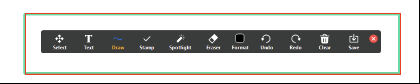 - Familiarize yourself with Zoom’s main tools: Text, Draw, Stamp, Spotlight, and Eraser.
