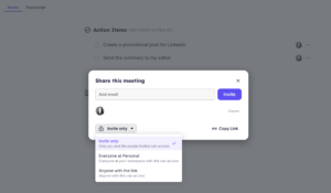 Your meeting notes and summaries are saved in a centralized space on your account. Plus, you can easily share them with anyone you need to in your team or outside it. It keeps everyone involved, and no time is wasted.