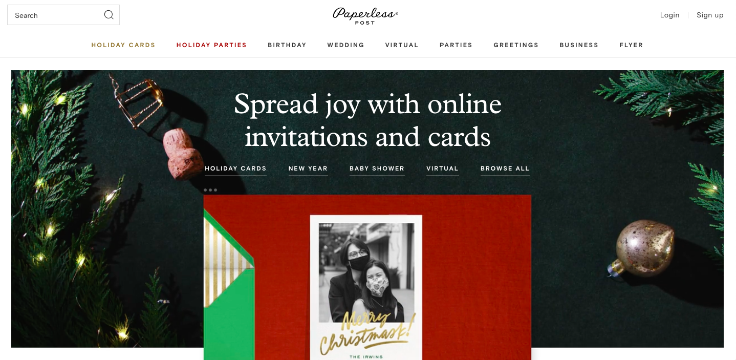 - Paperless Post: Paperless Post lets you create ornate virtual invitations that even have animations when the recipient opens them. This is my favorite website for sending online invitations because it comes the closest to mimicking physical invitations.