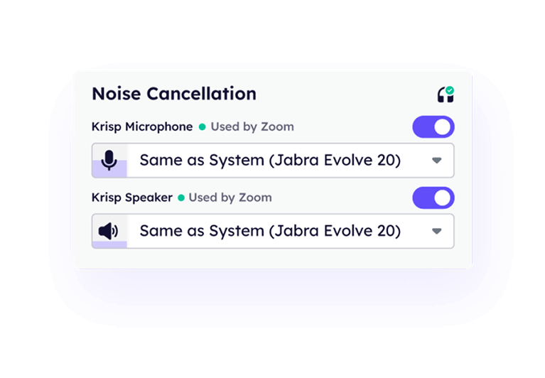 Krisp works with any audio tools out-of-the-box. Admins can centrally manage features, customize settings, and streamline seats and billing with the Enterprise plan.