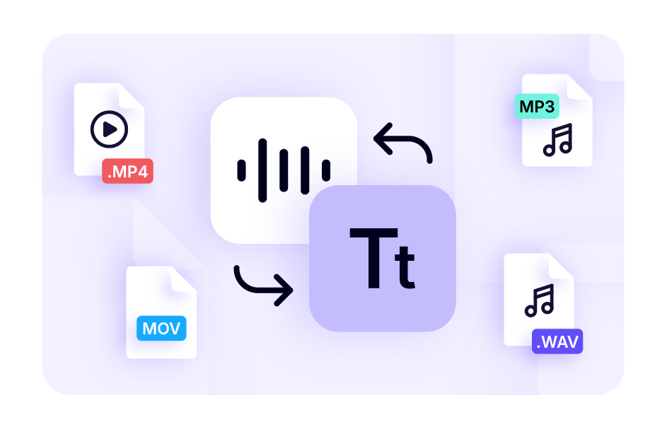 Upload MP3, WAV, M4A, MP4, MOV, and more. The video to text and audio to text converter support all major file types.